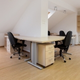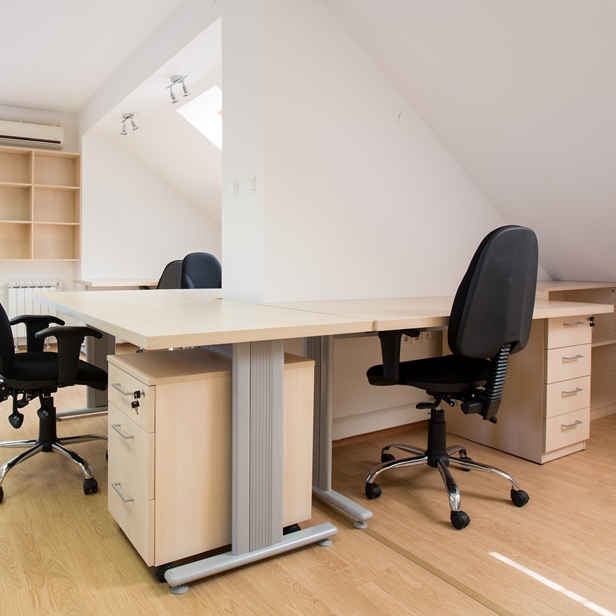 Poslovni prostori zahtjevaju maksimalnu preciznost i potpunu eleganciju. Stoga se, uz standardne materijale izrade koristi i staklo, uz najkvalitetniji okov i pribor. Dizajnirani kako bi zadovoljili sve zahtjeve bilo da želite poslovni prostor urediti u kombinaciji drvenih ploha i Å¡irokog izbora metalnih postolja i pribora ili klasiÄan uredski namjeÅ¡taj kompletno izraÄ‘en od drveta kako bi u svom uredu osjetili svu toplinu koju ono pruža. Ponuda ukljuÄuje radne i konferencijske stolove, arhivske ormare, pokretne ladiÄare, biblioteke, poliÄare i otvorene vitrine.
