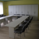 Program opremanja poslovnih prostora uvodi nas u potpuno drugaÄiji naÄin ureÄ‘enja interijera, jer za razliku od kućanstava, poslovni prostori zahtjevaju maksimalnu preciznost i potpunu eleganciju. Stoga se, uz standardne materijale izrade koristi i staklo, uz najkvalitetniji okov i pribor. Program opremanja poslovnih prostora obuhvaća objekte poput uredskih i prodajnih prostora, recepcija i konferencijskih dvorana te opremanje Å¡kola, vrtića i ljekarni. Dizajnirani kako bi zadovoljili sve zahtjeve bilo da želite poslovni prostor urediti u kombinaciji drvenih ploha i Å¡irokog izbora metalnih postolja i pribora ili klasiÄan uredski namjeÅ¡taj kompletno izraÄ‘en od drveta kako bi u svom uredu osjetili svu toplinu koju ono pruža. Ponuda ukljuÄuje radne i konferencijske stolove, arhivske ormare, pokretne ladiÄare, biblioteke, poliÄare i otvorene vitrine.